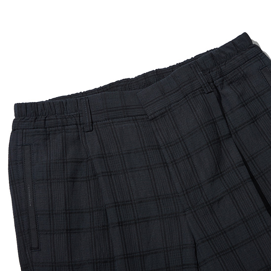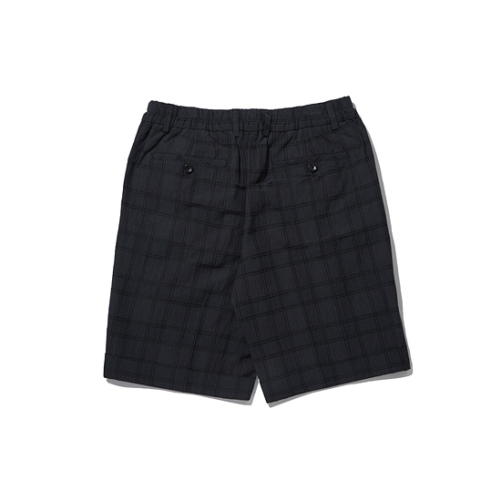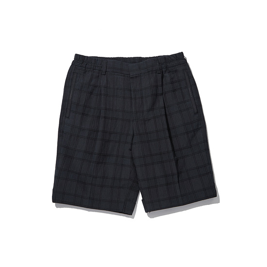 - 멋스러운 체크 패턴에 원턱을 적용한 셋업 남성 하프 팬츠.