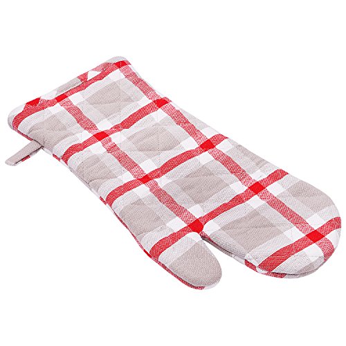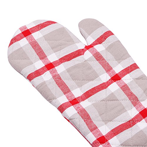 Maison Decor 100% Cotton Oven Mitt, Kitchen Basic, Perfect Gift, European Collection, 6 Inches by 13 Inches (Check Rojo)
