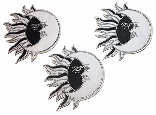 Product Description Half Moon Half Sun Black and White Patch Set of 3 Iron on Patches Each patch measures 4 inches wide by 4 inches tall Patches can be sewn or ironed on 0