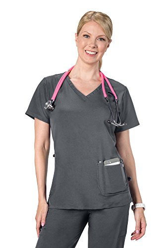 Coast Oak Clothing Women's Anti-Microbial Stretch Wrinkle & Stain Resistant Solana Scrub Top Grey