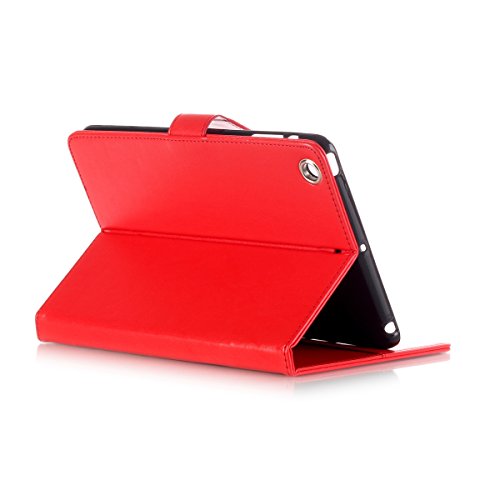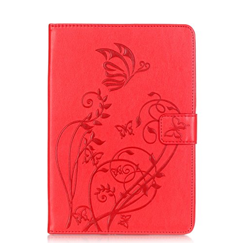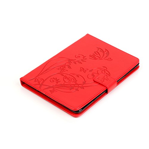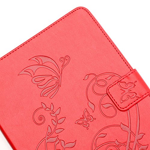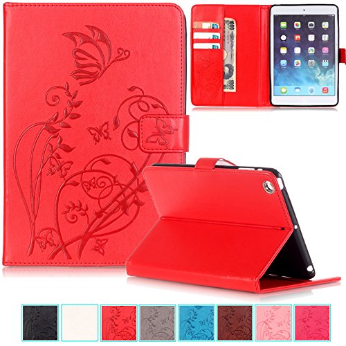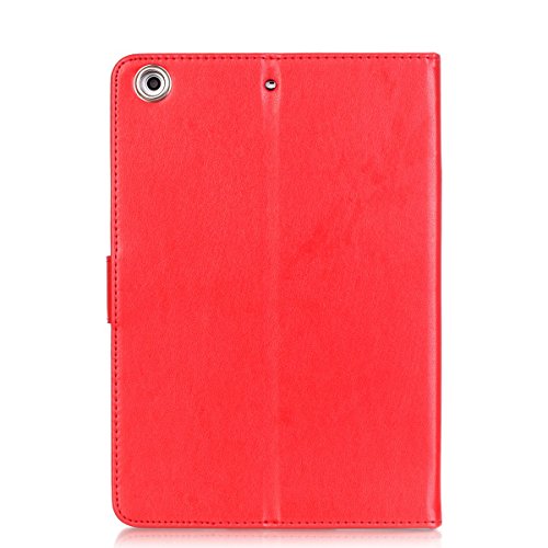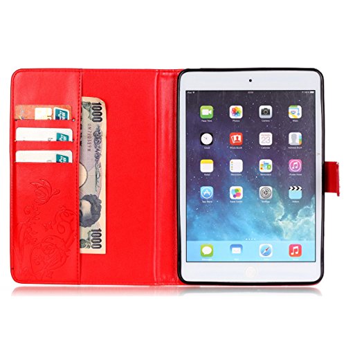 iPad mini Case,iPad mini 3/2 Case-UUcovers Embossed Synthetic Leather Butterfly&Flower Pure Color Series*Magnetic Closure*Stand Case*Cards/Cash Holder*Cover for Apple iPad mini 1/2/3-Red