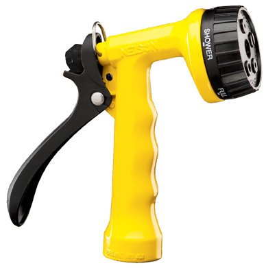 -. Feature : Multi-Pattern (5) Nozzle (Rear Trigger) / Metal body with chip-resistant, powder-coat finish / 5-pattern spray head / Crush-resistant, glass-filled nylon handle