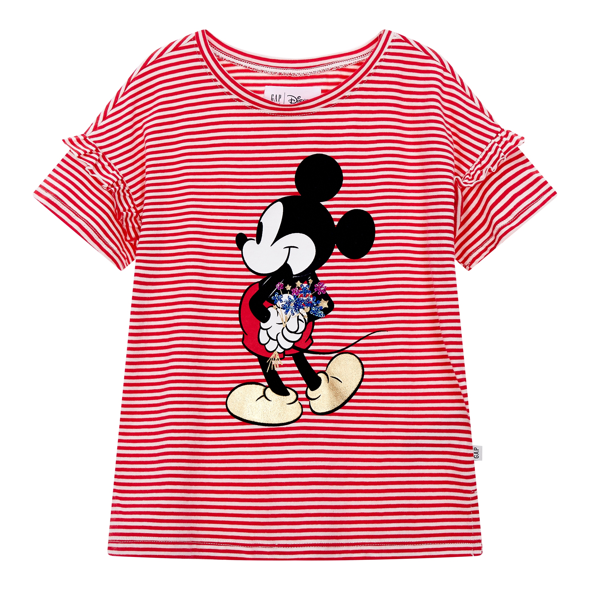 컬렉션 : 2018 Spring/Summer 디자인 포인트 : - 갭X디즈니- 어깨선 러플이 있는 별 프린트 위에 미키마우스 그래픽이 그려진 반팔 티셔츠 스타일링 추천 : - 데님팬츠, 캐쥬얼 팬츠와 함께 캐주얼하게 스타일링