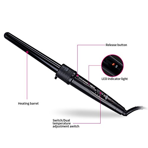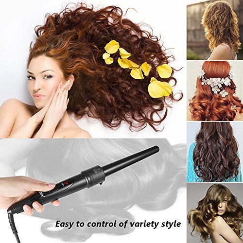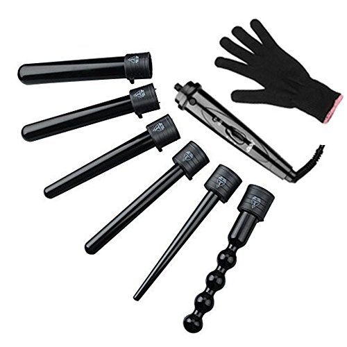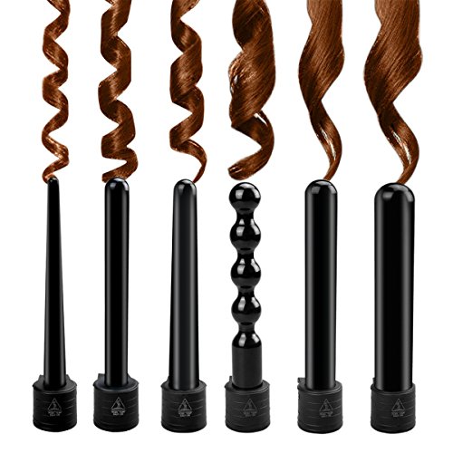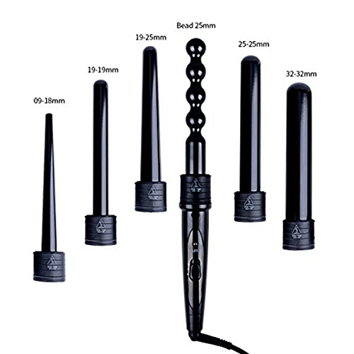 - 6 IN 1 FUNCTIONS: 6 interchangeable tourmaline ceramic ion barrels, meets your different curling style needs. Barrels are in different shapes and sizes: cylinder 32mm, conical 18-25mm, bead 25mm, cylinder 19mm, conical 9-18mm, cylinder 25mm