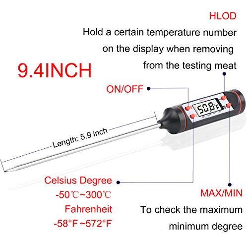 - TEMPERATURE RANGE - Temperature measurement range of -50ºC (-58°F) to 300°C (572º F) ,perfect for meat, poultry, BBQ, grilling, candy and more