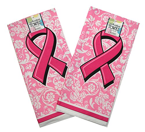 Set of 2 Spoontiques Brand Unique 100% Cotton "Breast Cancer Awareness Ribbon" 19-1/2" x 27" Dish Towel (2, Breast Cancer)
