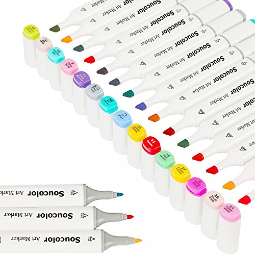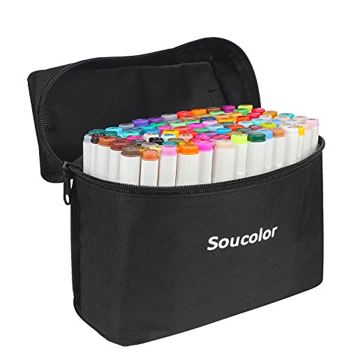 Soucolor Sketch Art Markers 100 Colors Artist Manga Dual Tip Markers Pens Highlighters with Marker Case for Coloring Drawing Painting Design Illustration