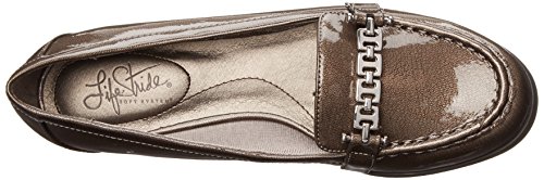 Product DescriptionGleaming faux patent dresses casual ensembles in the LifeStride Abella loafer, which features a cushioned footbed and a flexible synthetic outsole for extended comfort.0