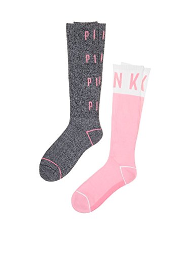 -. Title : Victoria's Secret PINK Rose Chiffon/Black Marl Knee High Socks - 2 Pairs