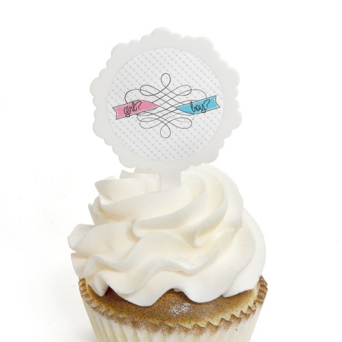 Cupcake toppers include 12 white decorative cupcake picks and 24 round sticker labels.