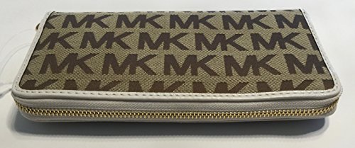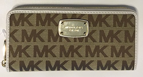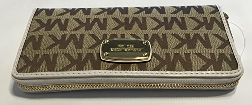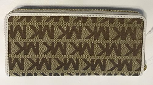 -. Brand : Michael Kors -. Color : Beige Ebony Vanilla -. Department : womens -. EAN : 0780456167709 -. Feature : Bagity is the exclusive Seller for this bundled set consisting of Michael Kors ZA Continental Jet Set Signature MK Clutch Wallet Beige Ebony Vanilla with a Gift Box / New Style just released with rounded front plate, and a beautiful gift box / Wrapped in beautiful jacquard and leather with polished gold tone hardware / Interior zippered coin pocket, 8 credit card slots, and bill compartments bill compartments, Center zippered coin compartment / Measures approximately 8" (L) x 4" (H) x 1" (W) -. Model : 35T0GTTE3L -. ProductGroup : Shoes -. ProductTypeName : HANDBAG -. Size : Large -. Title : Michael Kors ZA Continental Jet Set Signature MK Clutch Wallet Beige Ebony Vanilla with Gift Box -. UPC : 780456167709 This new style, released 2015 rounded front plate wallet is wrapped in beautiful jacquard and soft leather with polished gold tone hardware. The front is accented with Michael Kors engraved name plate. This zip around style wallet features a leather and fabric interior with 8 credit card slots a zippered coin compartment and full length bill compartments. It measures approximately 8" (L) x 4" (H) x 1" (W) and comes in a beautiful gift box.
