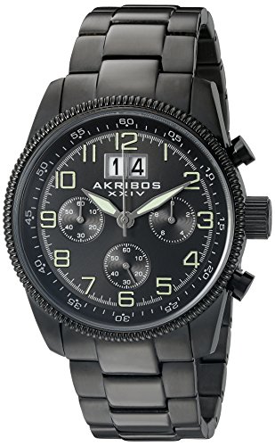 -. Title : Akribos XXIV Men's AK862BK Round Black Dial Chronograph Quartz Black Bracelet Watch