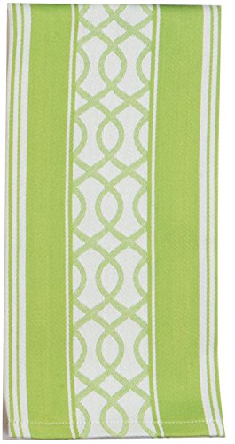 Kay Dee Designs R6338 Necessities Stripe & Trellis Jacquard Tea Towel,Lemon Grass