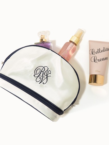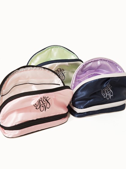 すべすべで柔らかいサテン地とパイピングのコード使い、配色の裏地など、バッグの中に入れておくだけで気分が上がりそうなアイテムです。