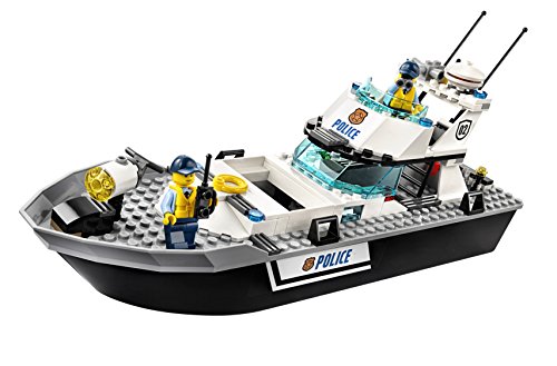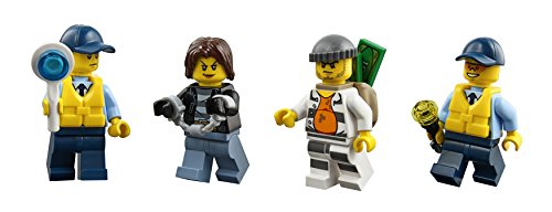 -. Feature : Features a Police Patrol Boat and a crook's boat / Accessory elements include a stop sign, walkie-talkie, handcuffs, binoculars, mugs, flashlight, 2 banknotes and a backpack / Includes 4 minifigures: a policeman, policewoman, female crook and a male crook / Police Boat measures over 6" (15cm) high, 12" (31cm) long and 3" (9cm) wide, crook's boat measures over 1" (4cm) high, 7" (19cm) long and 2" (7cm) wide / Spring the breakout function and start a prisoner pursuit
