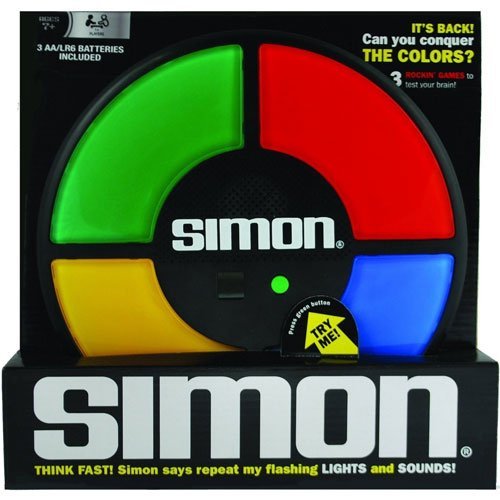 -. Binding : Toy -. Brand : Basic Fun -. Color : Multi-Colored -. EAN : 5889332837516 -. Feature : The classic 80's game of quick action, memory and recall is back and has a sleek new look and improved performance; it's surP.R.Isingly addictive / Can you remember the flashing light sequences and repeat them correctly? As you get better the level of difficulty increases / The new updated design with new LCD counter keeps track of the score; has single and multi-player modes / Features the immensely popular original 3 games from the original Simon / 3 AA batteries included, for players 7+ / Hold the game or play on the tabletop / Hypnotic lights and sounds / Tap and swipe, Quick start / Fast-paced play, Ages 8 and up / For 1 or more players / Requires 3 1.5V AA -. IsAdultProduct : 0 -. IsAutographed : 0 -. IsMemorabilia : 0 -. Label : Schylling -. LegalDisclaimer : Must be 18 years old to purchase. -. Manufacturer : Schylling -. ManufacturerPartsWarrantyDescription : Parts -. Model : 1897 -. MPN : 1897 -. NumberOfItems : 1 -. PackageQuantity : 1 -. PartNumber : 1897 -. ProductGroup : Toy -. ProductTypeName : TOYS_AND_GAMES -. Publisher : Schylling -. Studio : Schylling -. Title : Schylling Simon Memory Board Game -. UPC : 014397018975 -. Warranty : No Warranty