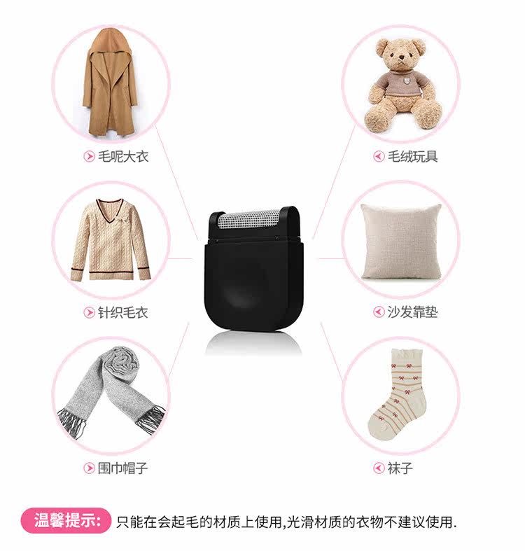 注意:请勿使用于较细的衣物毛衣,刷头可能会钩出毛线。