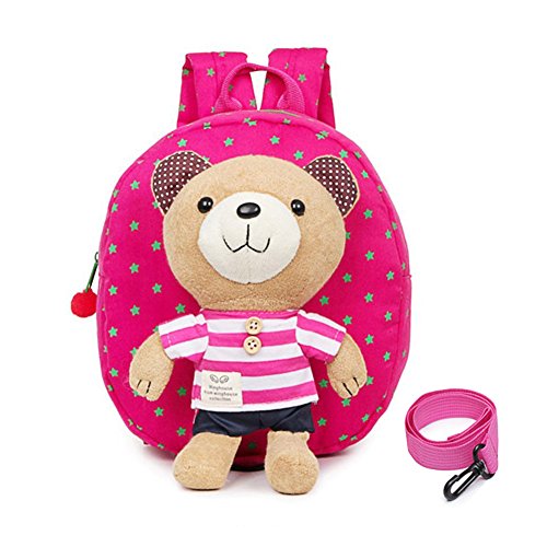 -. Feature : Material: made of high quality waterproof and durable canvas fabric, and on the back of the bag is breathable mesh material / Well-designed: cute animal bear design doll could be removed as well as tether strap / Top handle for hanging when not in use, and it is lightweight and soft for children / Suitable age group: suitable for 1-3 years old children, and with adjustable straps to get the correct size for your child / Size: 21*9*26cm/ 8.2*3.5*10.2, big enough to put books, snacks, toys and other stuffs in the bag