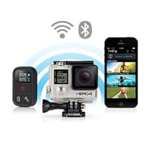 Control, view and share with built-in Wi-Fi + Bluetooth. HERO4 Black features built-in Wi-Fi and Bluetooth, allowing you to connect to the GoPro App, Smart Remote and more. The GoPro App transforms your phone or tablet into a live video remote for your camera, offering full control of all functions and settings, easy shot preview and playback, plus sharing via text, email, Facebook and more. The Smart Remote allows you to control multiple GoPro cameras from distances of up to 600-feet (180 metres). |