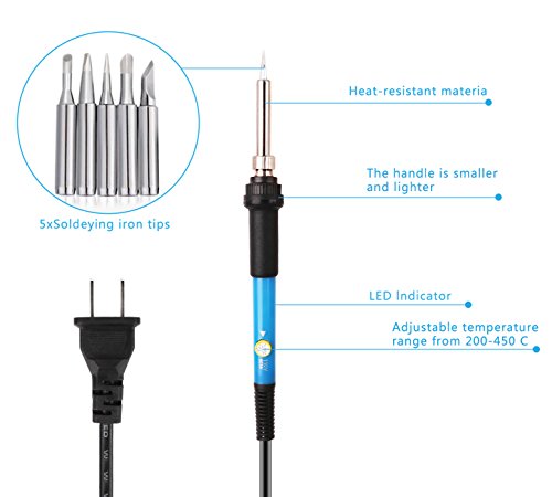 【Heat UP Quickly & Heat Dissipation Efficiency】 -The 60W soldering iron heats up very fast with inner-heated ceramic technology and steel-pipe design has better heat dissipation than others.