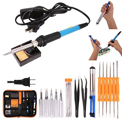 DAPRIL Soldering Iron Kit Electronics, 60W Adjustable Temperature Welding Tool, 5pcs Soldering Tips, Desoldering Pump, Soldering Iron Stand, Tweezers,