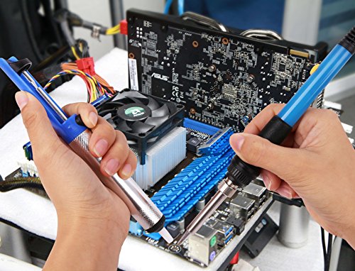 【CUSTOMER CARE】Non-slip rubber handle offers you comfortable and safe soldering with great hand feeling. Soldering wire in tube container and solder stand provide you an organized workbench without any fluster.