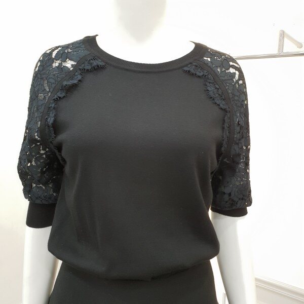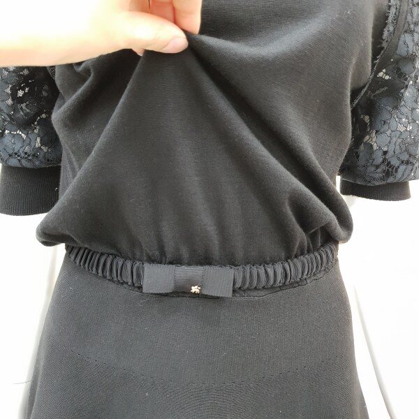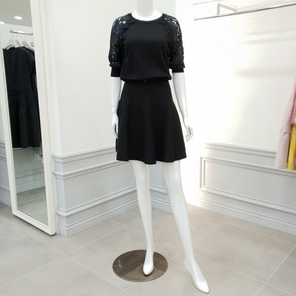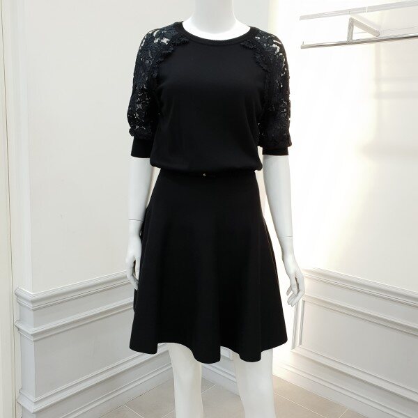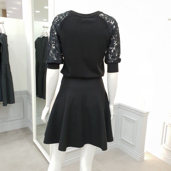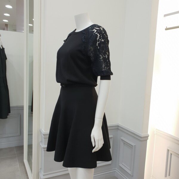 소매레이스배색과 실루엣이여성스러운 니트원피스입니다~♡밴딩처리된 벨트가 허리선을잡아주어흘러내리지 않습니다