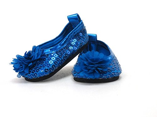 -. Title : Royal Blue Flowers & Sequins Flats-18" Dolls