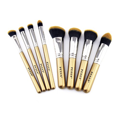 PUEEN Professional Kabuki Makeup Brush Set - Premium Quality Hand-crafted Cosmetic Brushes Kit - 8 Piece Collection - 100% Pure Luxury Copper...