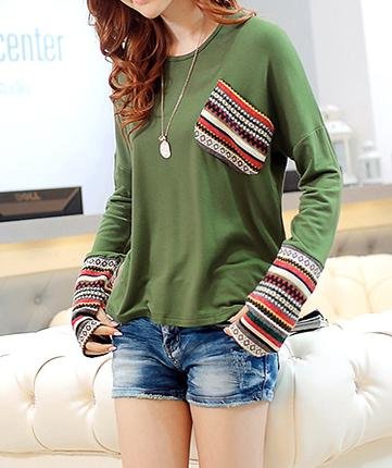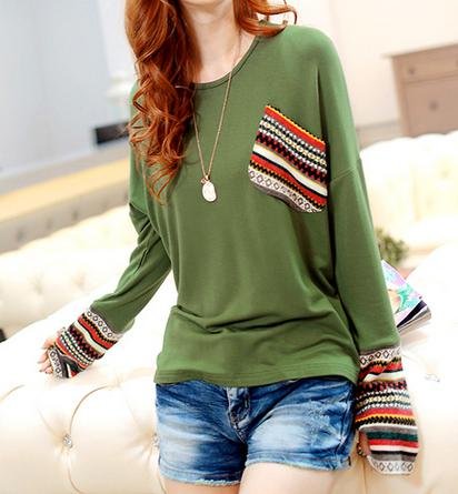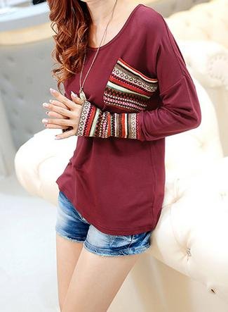 -. Feature : シンプルなカラーにお洒落なパッチワークが施されたロングティーシャツです。 / 袖に指穴つき!より可愛さをアピール / 柔らかな伸び心地の素材を使用したうれしい着心地です / 毎日の着こなしに甘さと彩りを添えてくれるカワイイ一着 / サイズ詳細については商品説明文をご覧ください。
