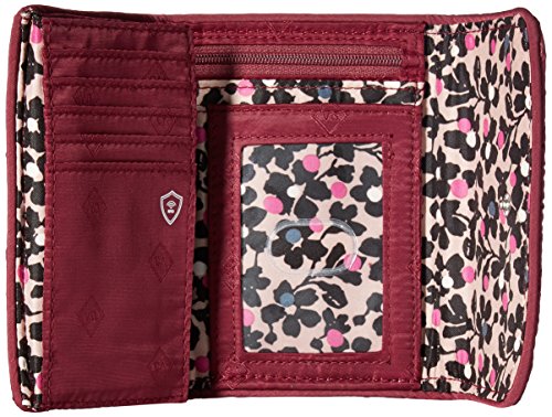 PERFECTLY SIZED: Our Vera Vera RFID Compact Wallet measures 5.25 x 4 inches with RFID protection and featuring 1 zippered exterior pockets, 1 slip pocket, and 13 card slips, 2 bill slips, an ID window, and zip coin pocket