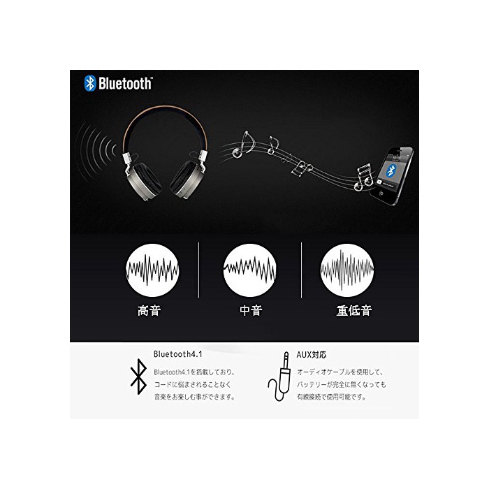 원본상품명: [QIHANG]Bluetooth4.0 ヘッドホン 有線 microSDカド(microSDカド付き) Radio Mode 量表示可能 折りたたみ式 高音質再生 通話可能 重低音ヘッドホ