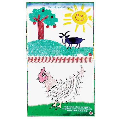 - Feature : 30 Page activity book designed by artist Emily Green / Reusable, crayons and dry erase markers wipe clean / Page activities include: coloring, mazes, word search, connect the dots, counting, find the difference and much more / Large spiral binding, overall size is 12 x 10.5-Inch / C.R. Gibson has been providing family friendly albums, decor and toys since 1896