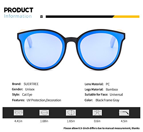 SUERTREE Bamboo Sunglasses Cute Women Men Cat Eye Shades Vintage Retro Summer Rimless Eyeglasses JH8003