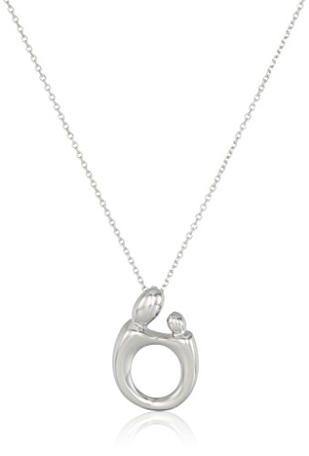 -. Feature : Sterling silver necklace featuring abstract mother and child pendant suspended from delicate chain / 18" cable chain with sP.R.Ing-ring clasp / Crafted in .925 sterling silver / Domestic