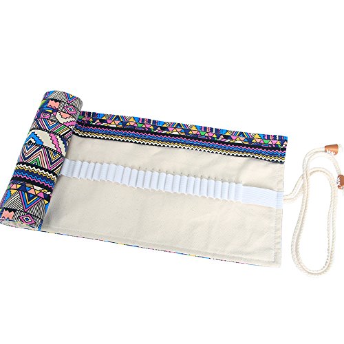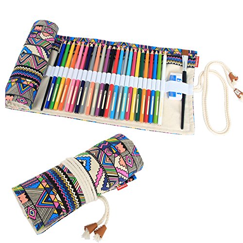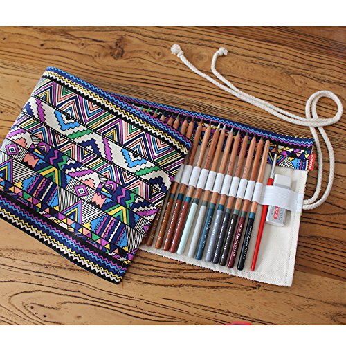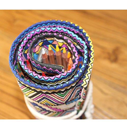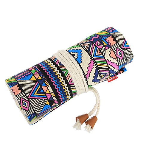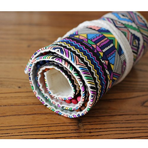 Damero Canvas Pencil Wrap Case, Pencils Roll Hold for 36 Colored Pencils (NO Pencils included), Bohemian, 36 Holes