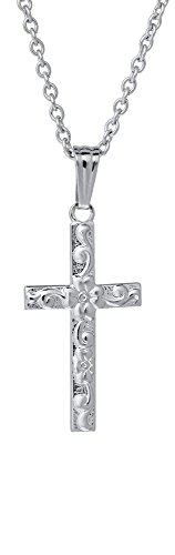 -. Feature : Sterling Silver Floral Cross Pendant 0.39 wide x 0.76 tall / For the dainty flower in your life, show your faith with this floral cross. This cross pendant comes with a 15" sterling silver cable chain. / The perfect gift for your little one. Gift box is included. / The Marathon Company unconditionally guarantees the workmanship and materials of its products. If you are not fully satisfied, please return the product for repair or replacement. / Proudly Manufactured in the USA