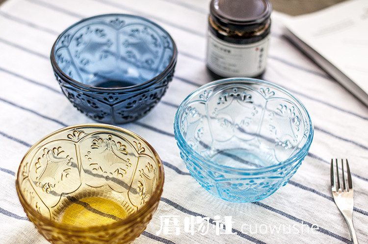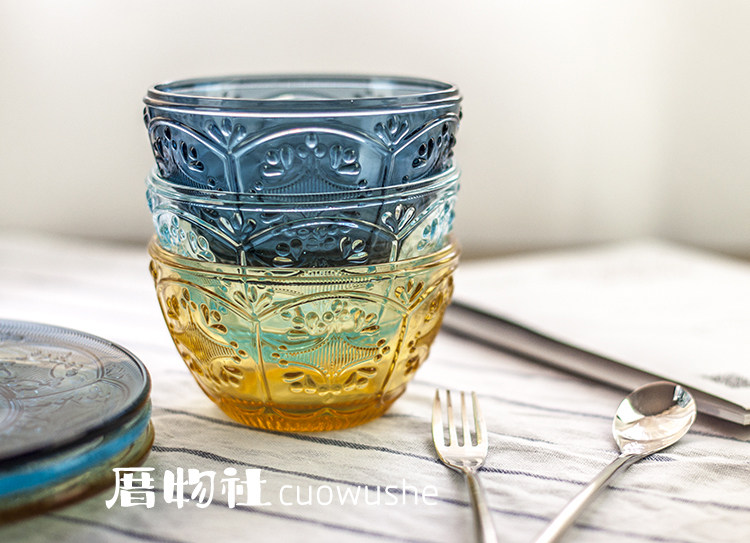 【推荐】:晶莹剔透如水晶般质感,精美细致的欧式复古浮雕刻花,质感厚重,分量十足,耐热玻璃,可直接加热水。适合用来做甜品碗,水果沙拉碗,汤碗等。出口外单跟单产品。还有配套碟子出售哦~