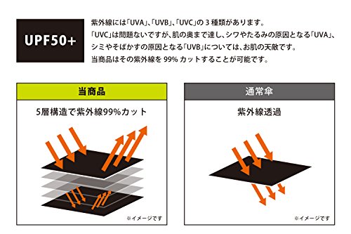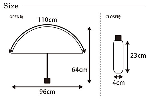 -. Feature : 【UVカット】紫外線カットに特化した折り畳み傘。UPF50(UPF数値の中の最高値)なので真夏の紫外線対策におすすめです。 / 【雨天兼用】晴雨兼用ですので晴れの日は日傘・雨が降ったら雨傘になります。1つもっておけばいつでも使えて便利です。UVカット率は99% / 【超撥水】高密度で防水性の高い布地を利用しているので、撥水性に優れています。軽くふるだけで雨水が落ちます。 / 【サイズ】高さ/64cm, 幅/96cm, 奥行/110cm  【収納時】縦23㎝ 幅/4㎝  【重量】約300g / 【親骨本数】:8本