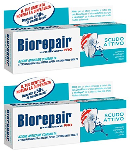 BIOREPAIR: "SCUDO ATTIVO" (ACTIVE SHIELD) TOOTHPASTE WITH MICROREPAIR * 2.5 FLUID OUNCE (75ML) TUBES (PACK OF 2) * [ ITALIAN IMPORT ]