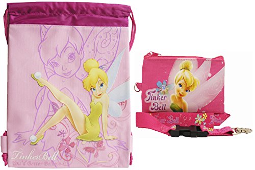 Disney Tinkerbell Pink Drawstring Bag and Lanyard