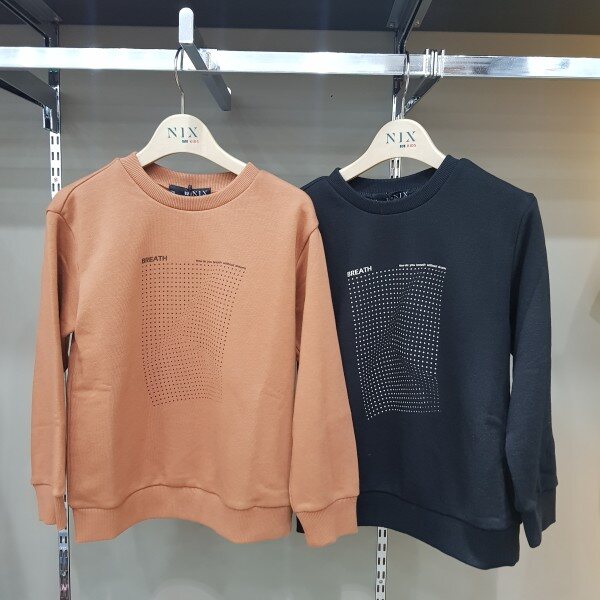 기하학패턴의 도트무늬 맨투맨티셔츠브릭(갈색)색과 검정