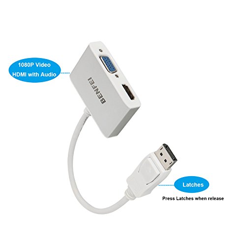 Portable adapter connects a DisplayPort (DP, DP++, DisplayPort++) equipped laptop or desktop to an HDTV, monitor, or projector with HDMI or VGA input; An HDMI or VGA cable (sold separately) is required