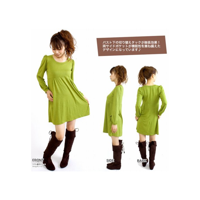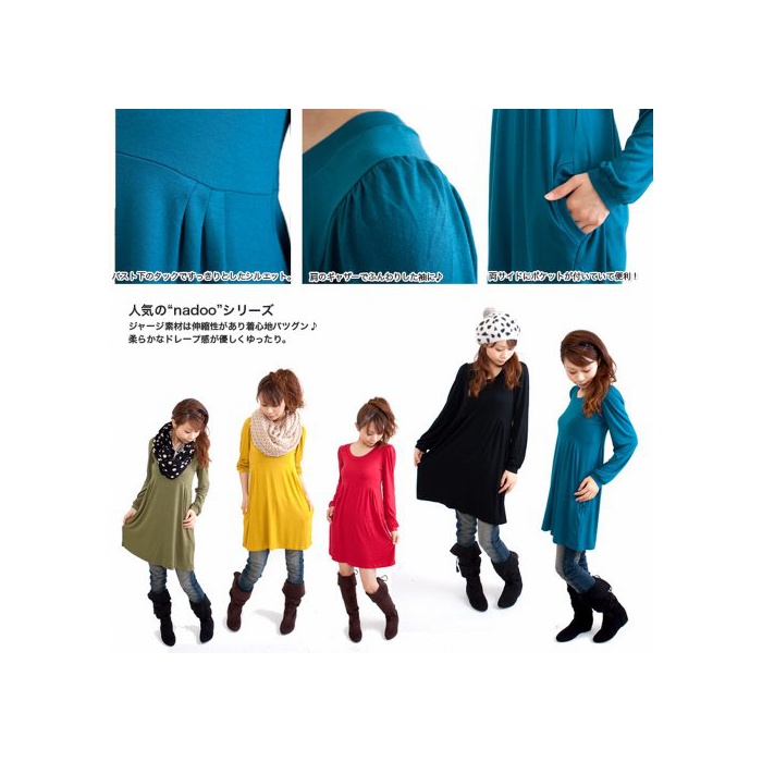 원본상품명: (ナドゥ?) nadoo 全14色 プレ?ンカラ? ラウンドネック ジャ?ジ 長袖 ワンピ?ス 141
