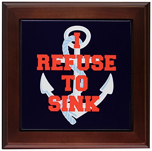 3dRose ft_216259_1 I Refuse to Sink Popular Saying White, Red and Blue Framed Tile, 8 by 8"