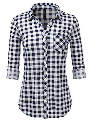-. Feature : Machine Wash Cold with Like Colors / Only Non Cholrine / Line Dry / Women's casual classic plaid patterned shirts top w/ single chest pocket / Features roll up sleeves, super soft and a bit sheer fabric / Please be advised to see our size chart in the descriptions below for the most accurate fit. / Color disclaimer: Due to monitor settings and monitor pixel definition, we cannot guarantee the color that you see will be exact from the actual color of the product.