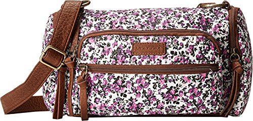 Main zip compartment for your small essentials. Adjustable shoulder strap. Front and side zip pockets for additional storage. Embroidered logo patch adorns front. Materials: 80% cotton, 20% polyurethane. Imported.