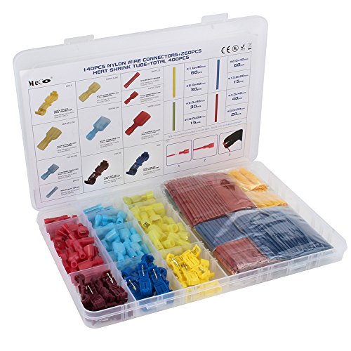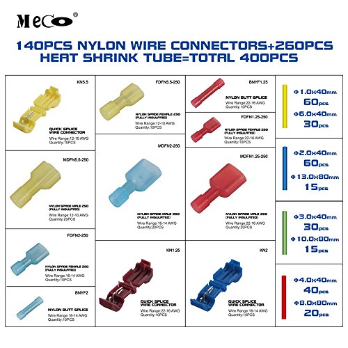 410PCS Electrical Terminals Kit MECO Assorted Crimp Terminals Set 140PCS Nylon Wire Connectors + 270PCS Heat Shrink Tube