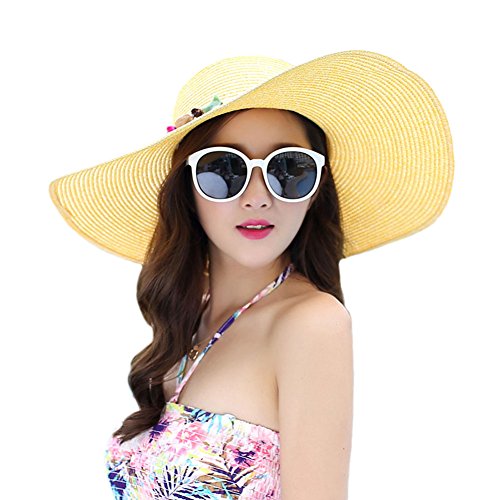 Product Features: Materials: Straw Braided, 100% brand new and high quality. Gender: Women and Girls Seasons: Spring, Summer and Autumn Colors Available: Pink, Khaki, Navy, Yellow and Sky Blue Package Included: 1 x Women Big Brim Sun Hat; A well made and perfect summer accessory!