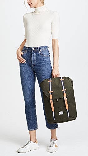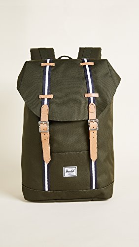 A sturdy Herschel Supply Co. backpack accented with striped trim. Patch front pocket and decorative buckles. Magnetic top flap and lined, 1-pocket interior. Padded back. Locker loop and adjustable shoulder straps.